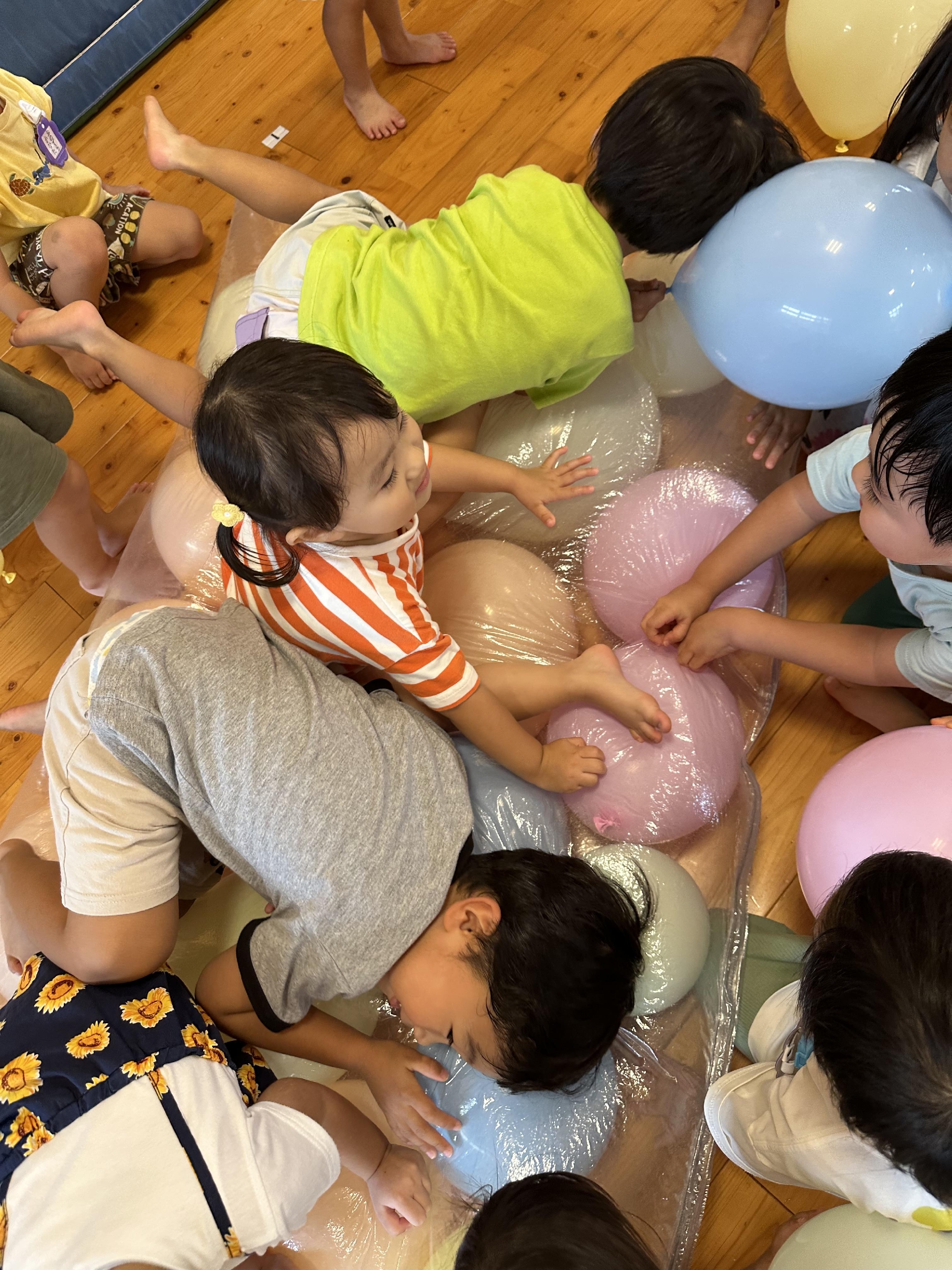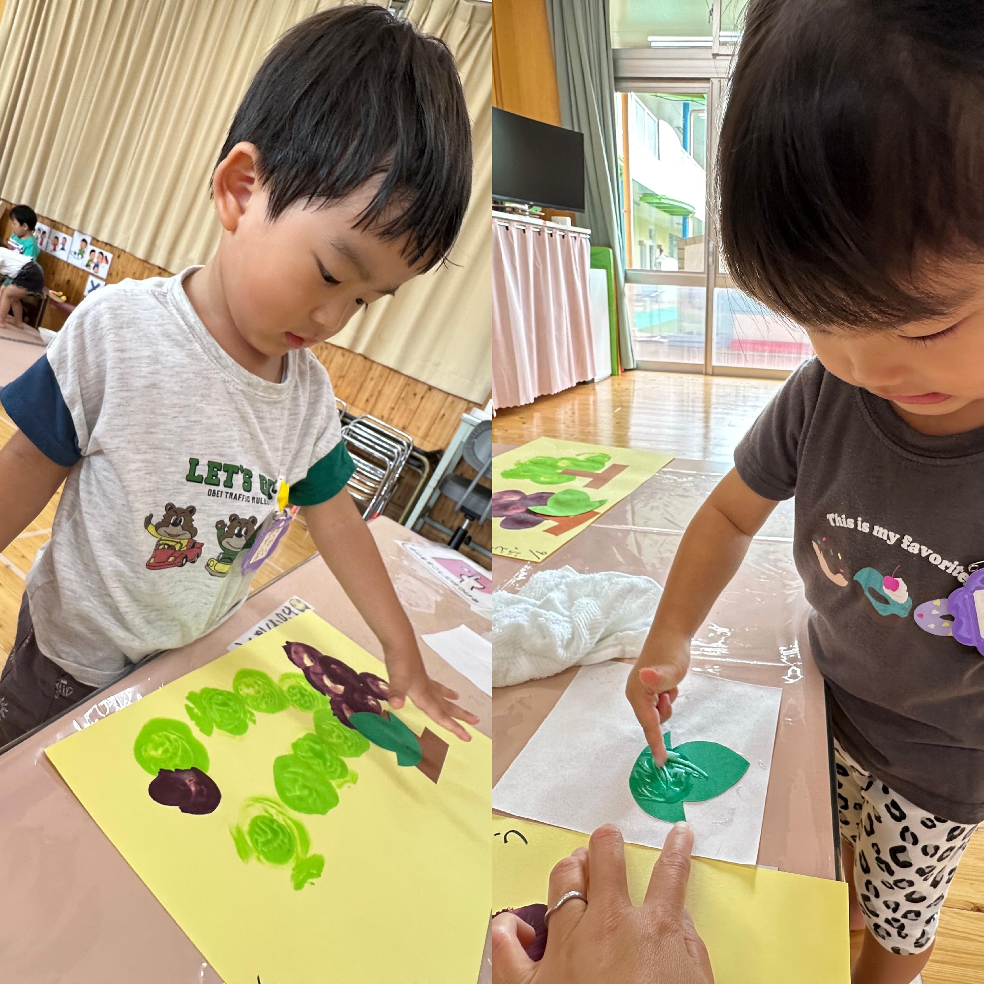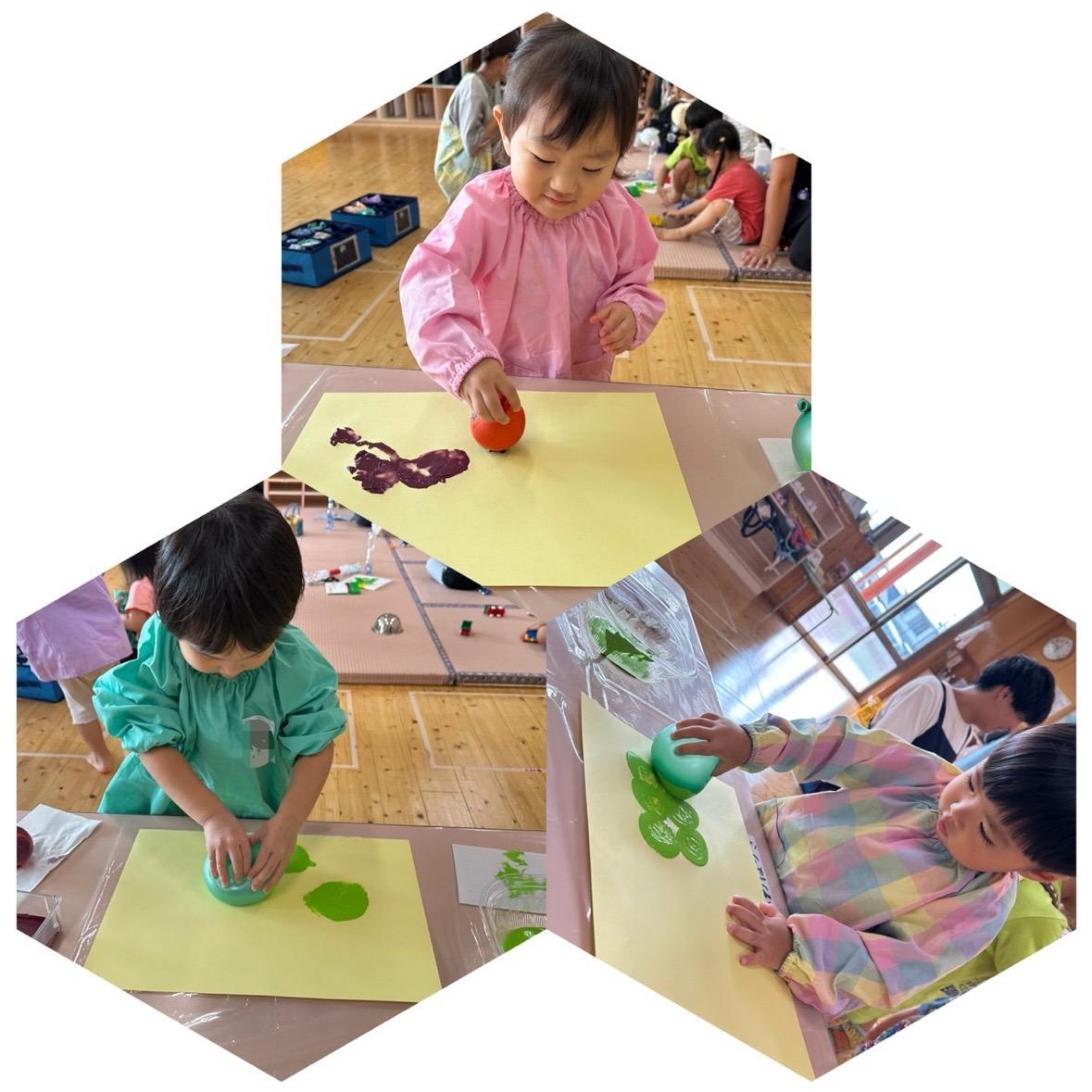 思い思いに風船スタンプを楽しみながら、一口サイズのぶどうの粒や、はらぺこ青虫を作る子も🐛