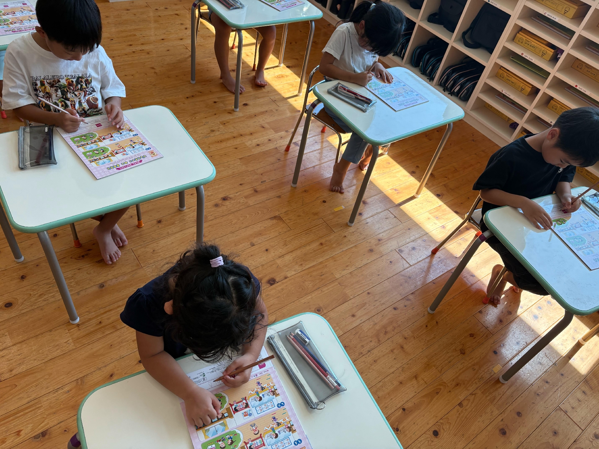 年長組では今月から、自分でキンダーブックの名前書きに挑戦しています!✏️