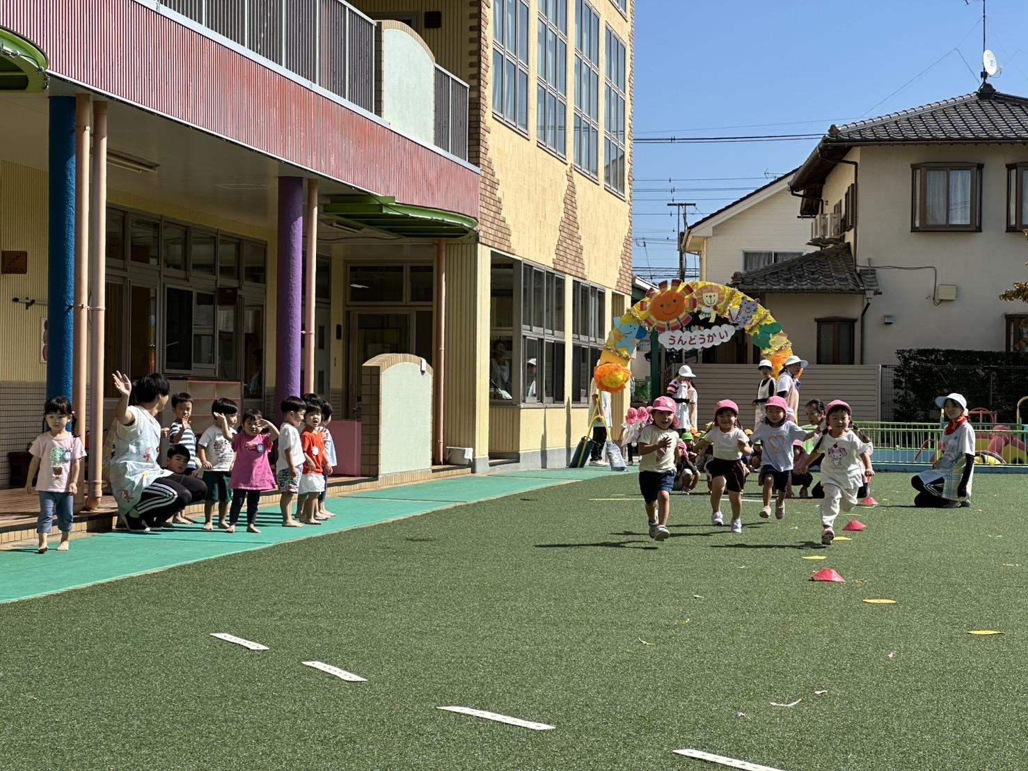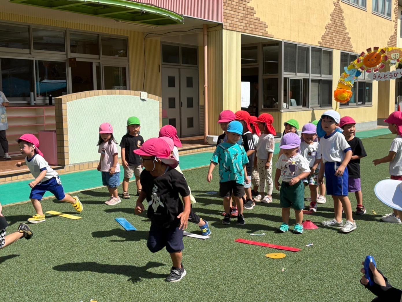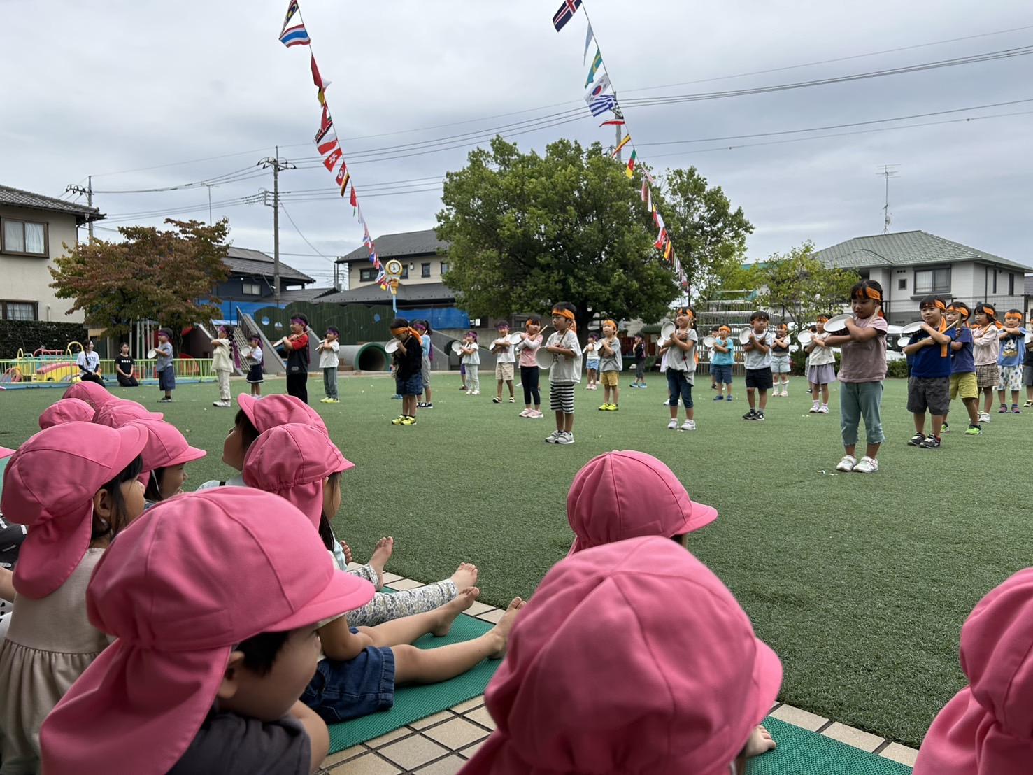 色とりどりの旗が風に揺れて、すっかり運動会モードに♪