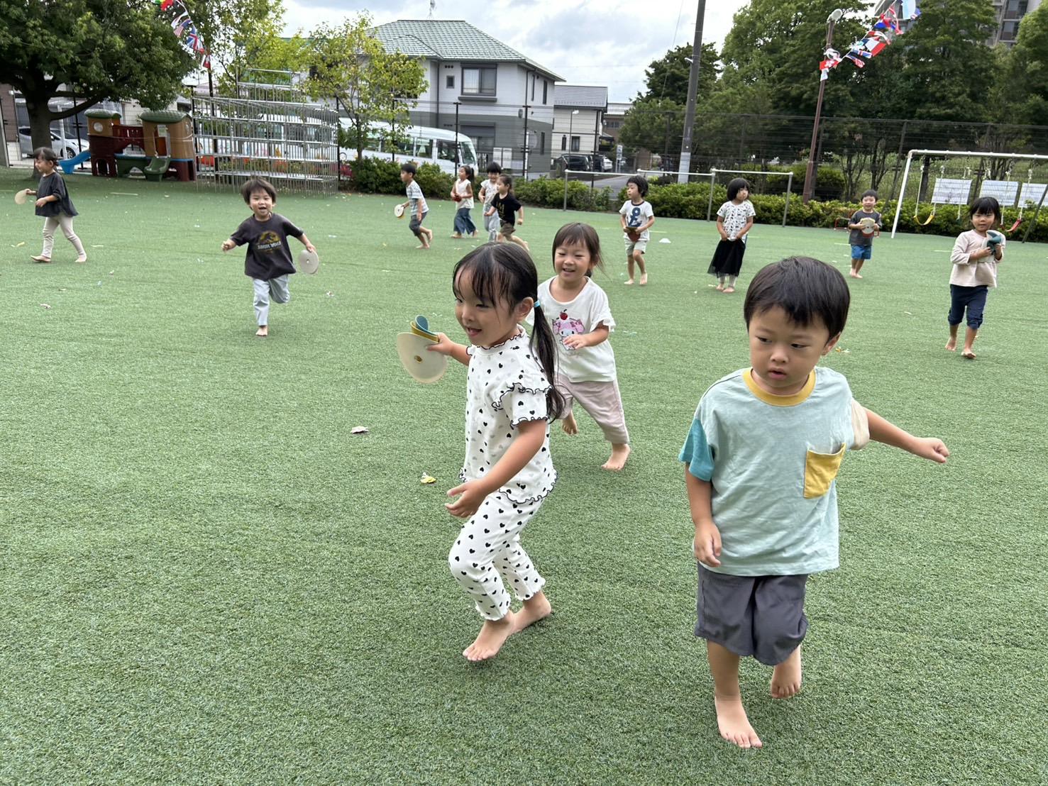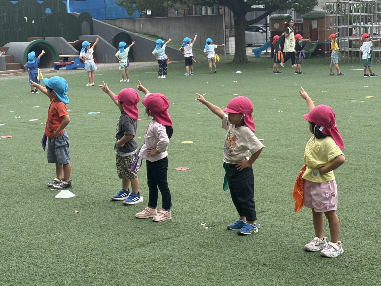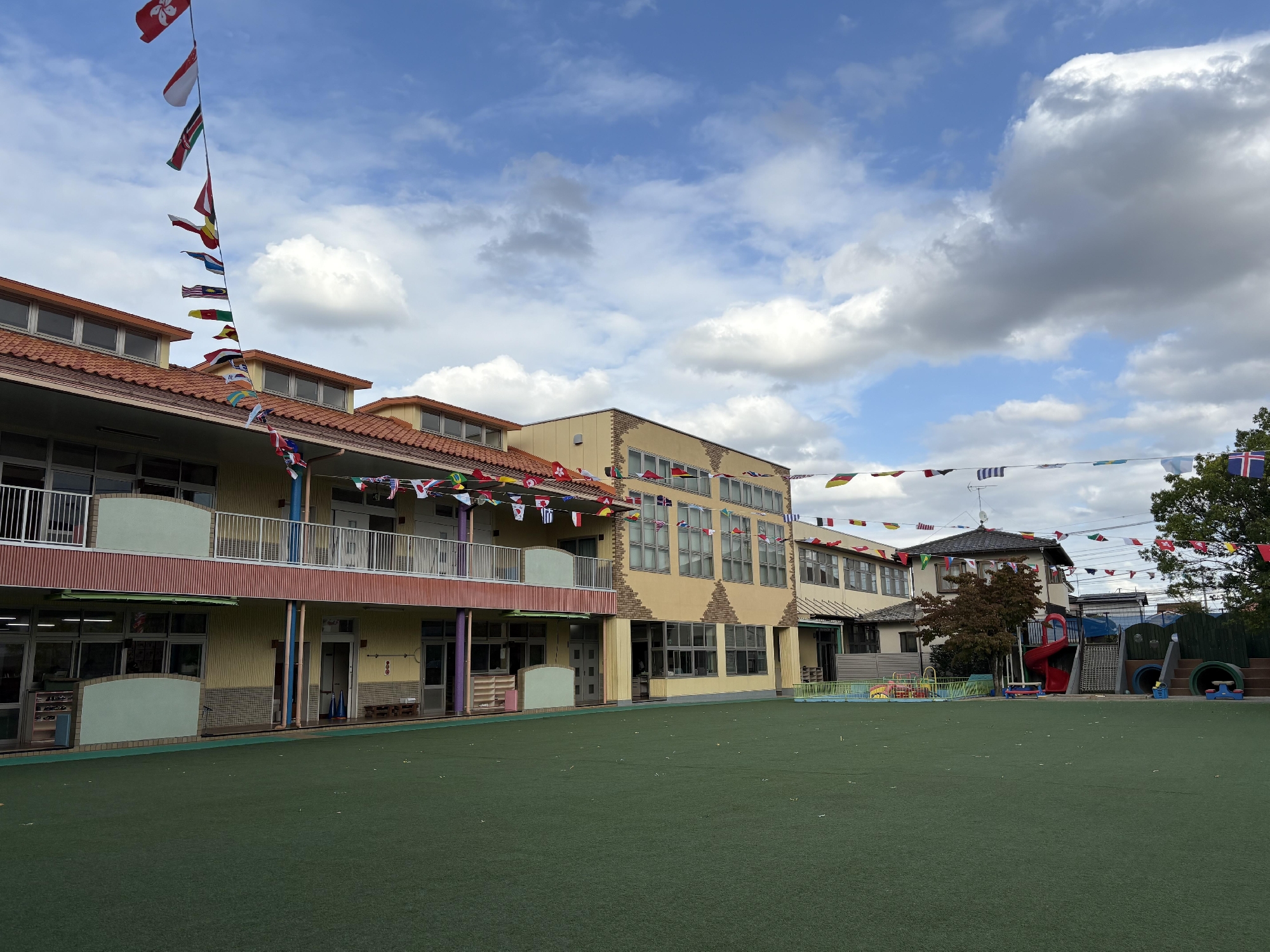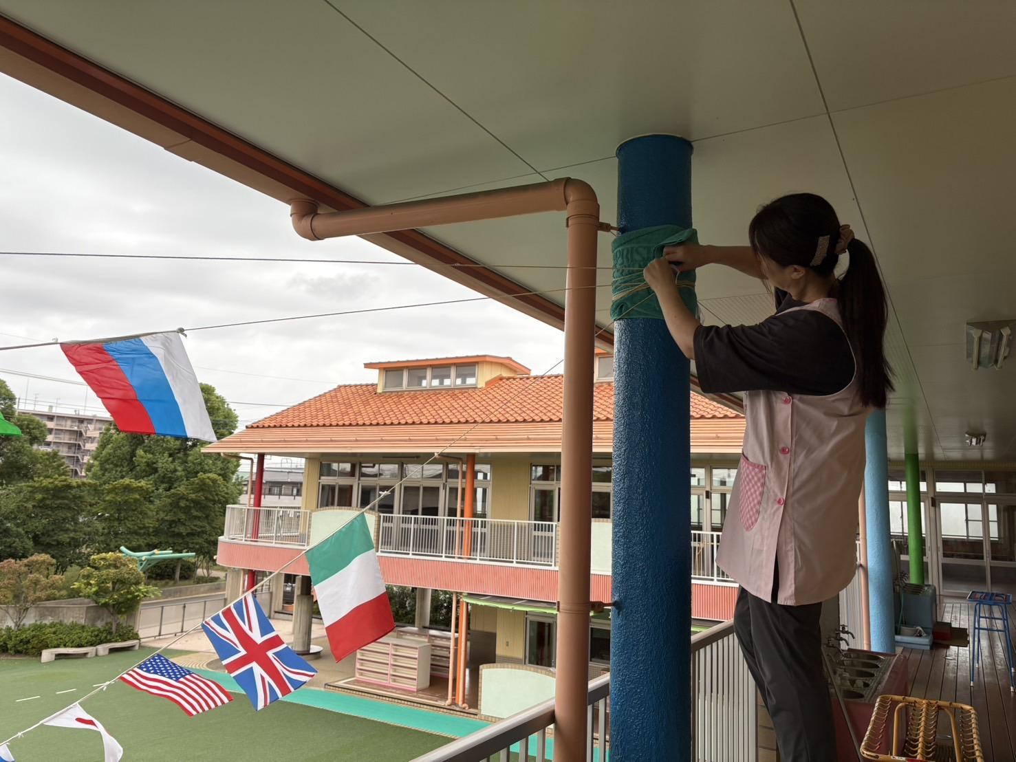 今日は園庭に万国旗を飾りました🎌✨