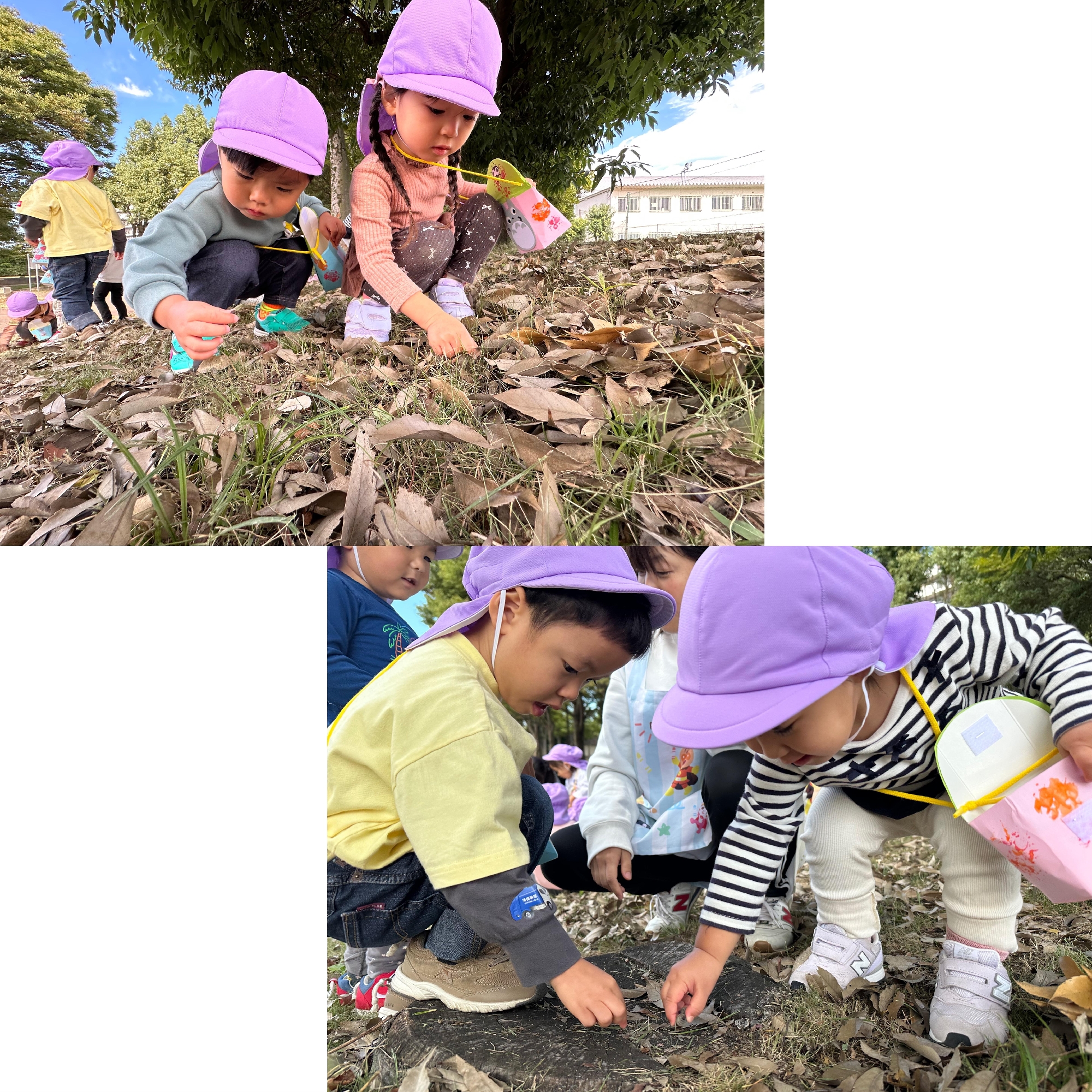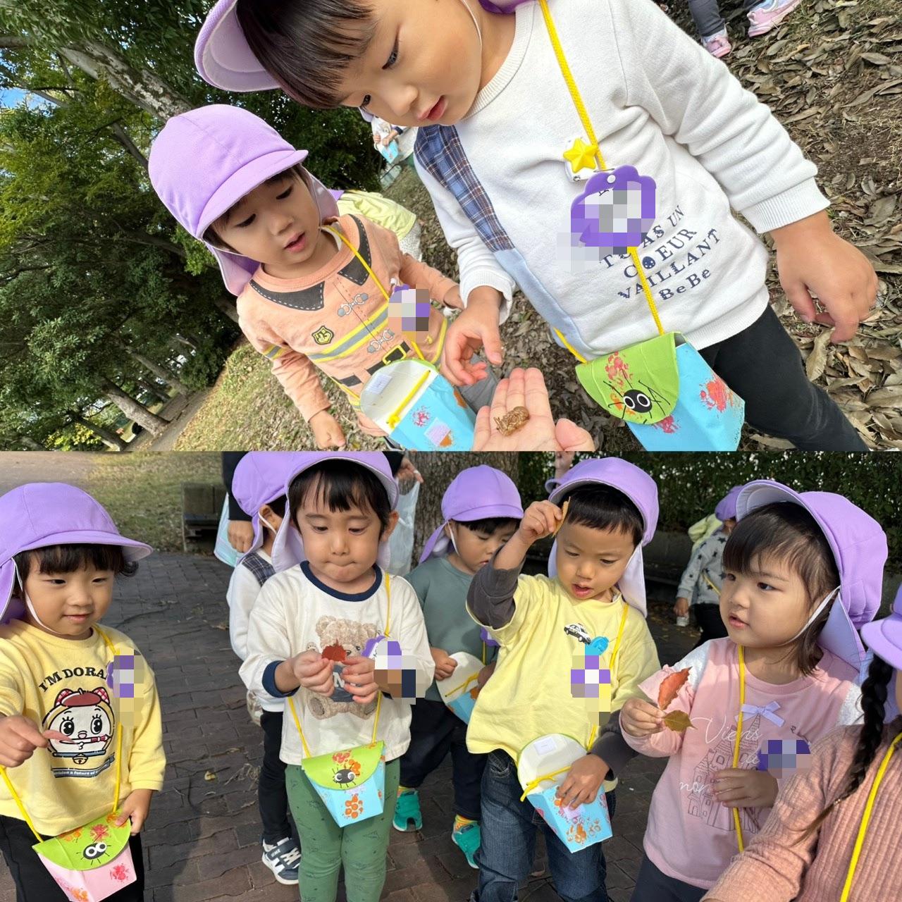 遊具で遊んだ後は、葉っぱや木の実集め!!