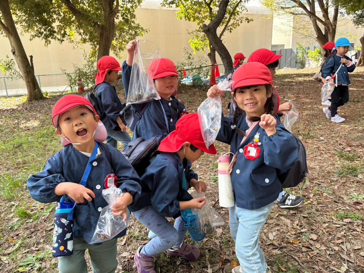 帰り道にはどんぐりやまつぼっくりを見つけて「みてみて!」と見せ合う姿も☺️