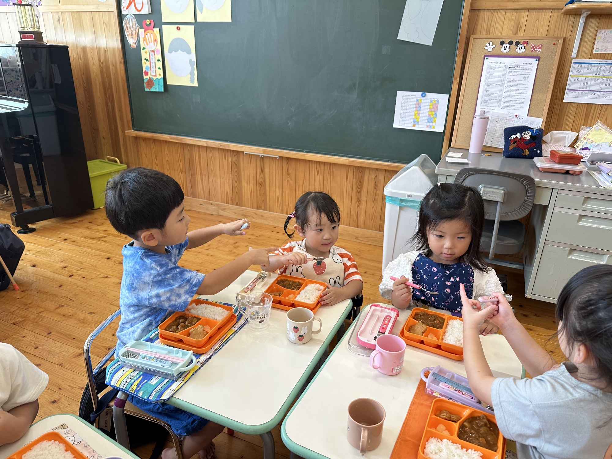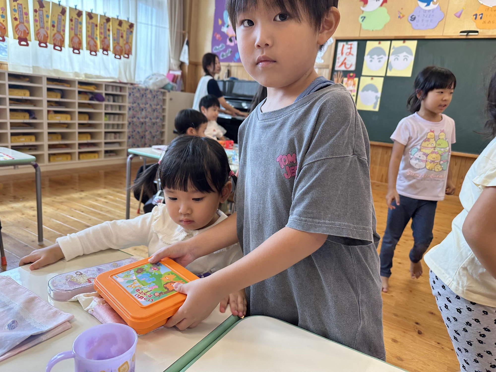 今月は、年長のあやめ組さんと一緒にランチタイム🍽️お給食を運んでくれたり、スプーンの持ち方を教えてくれました🥄