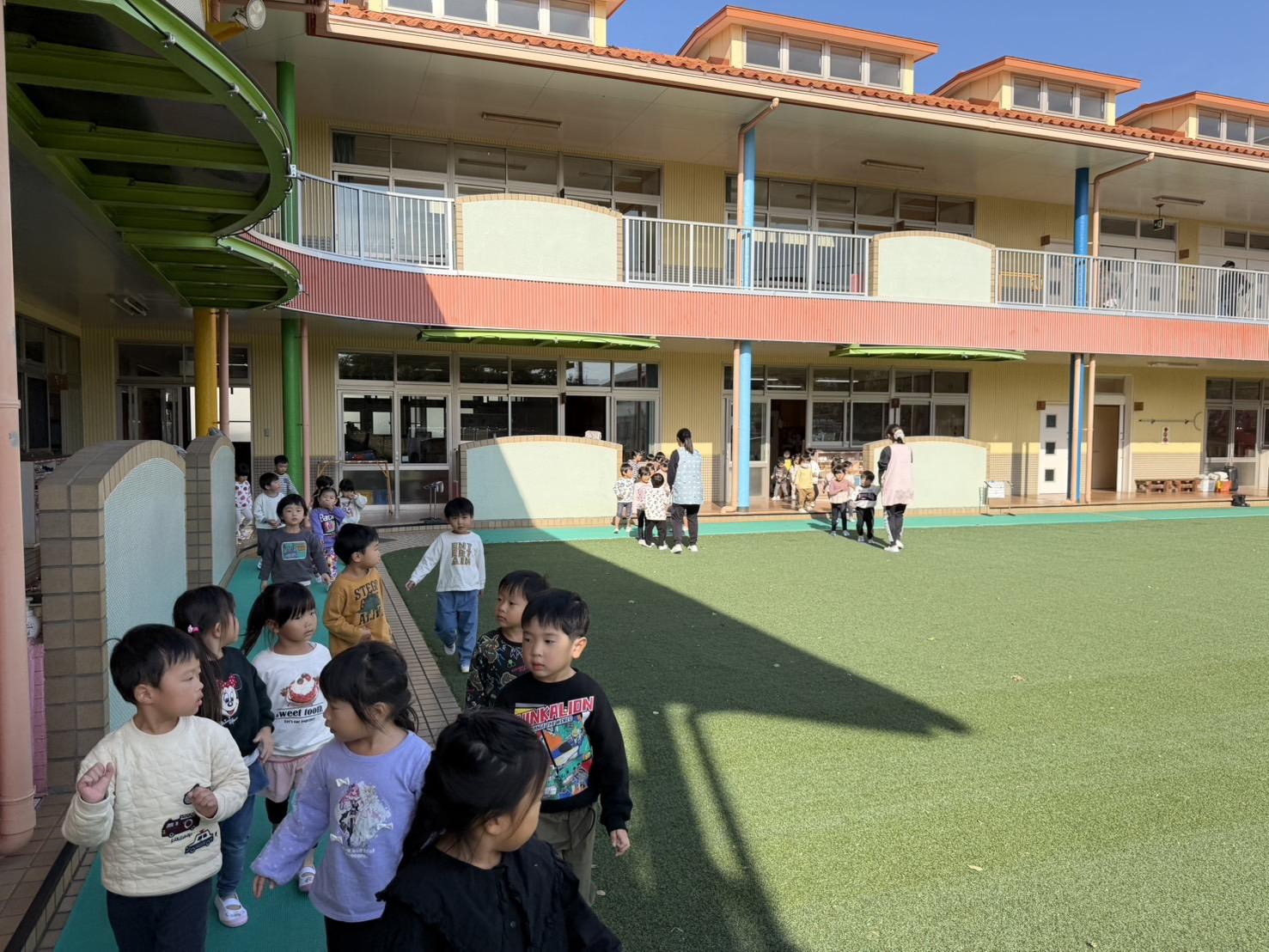 サイレンが鳴ると少し緊張した様子も見られましたが、先生の話をしっかり聞きながら、落ち着いて安全に公園まで避難することができましたね👏