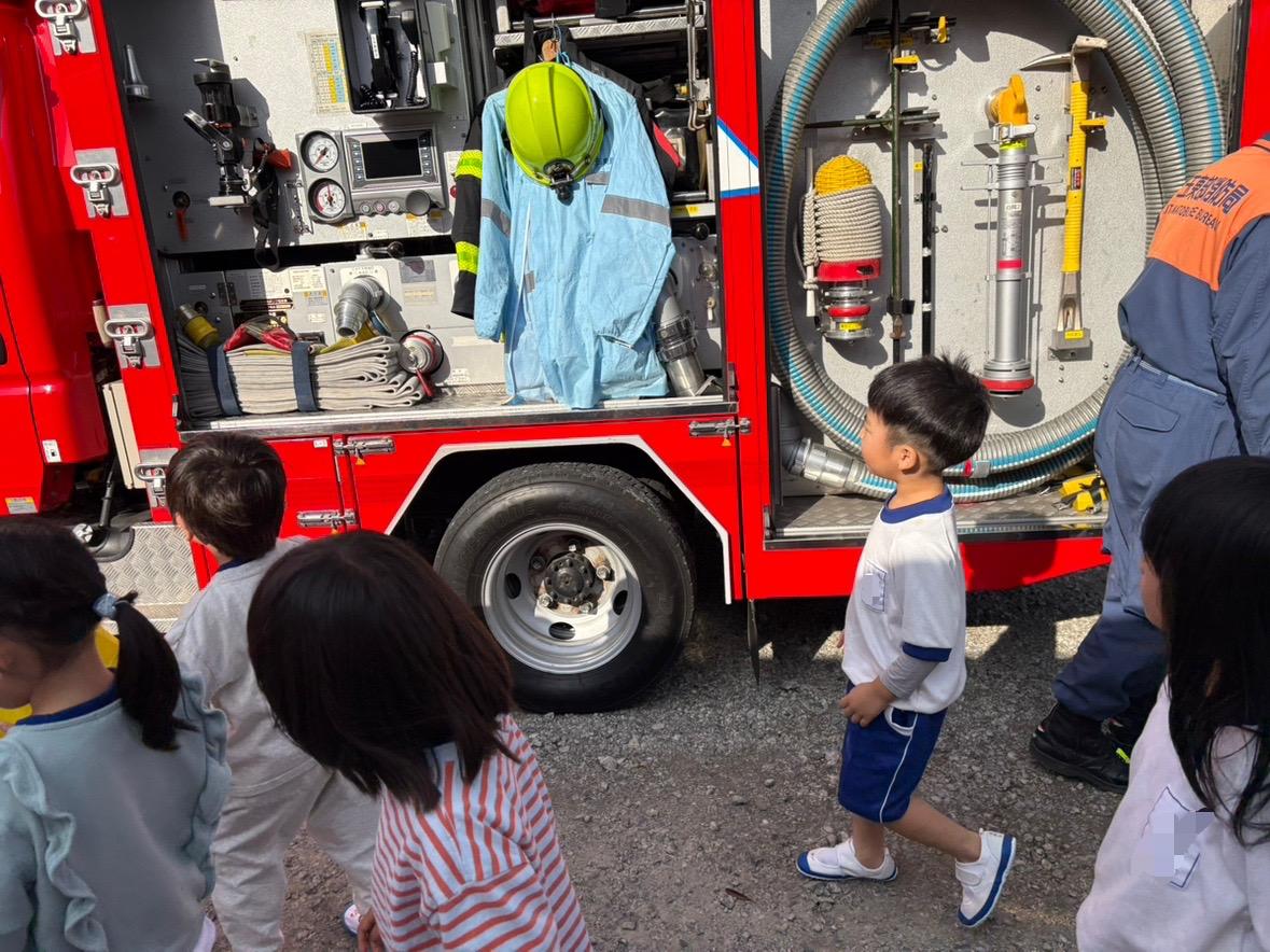 近くで見る大きな消防車や、さまざまな道具に子どもたちは興味津々✨