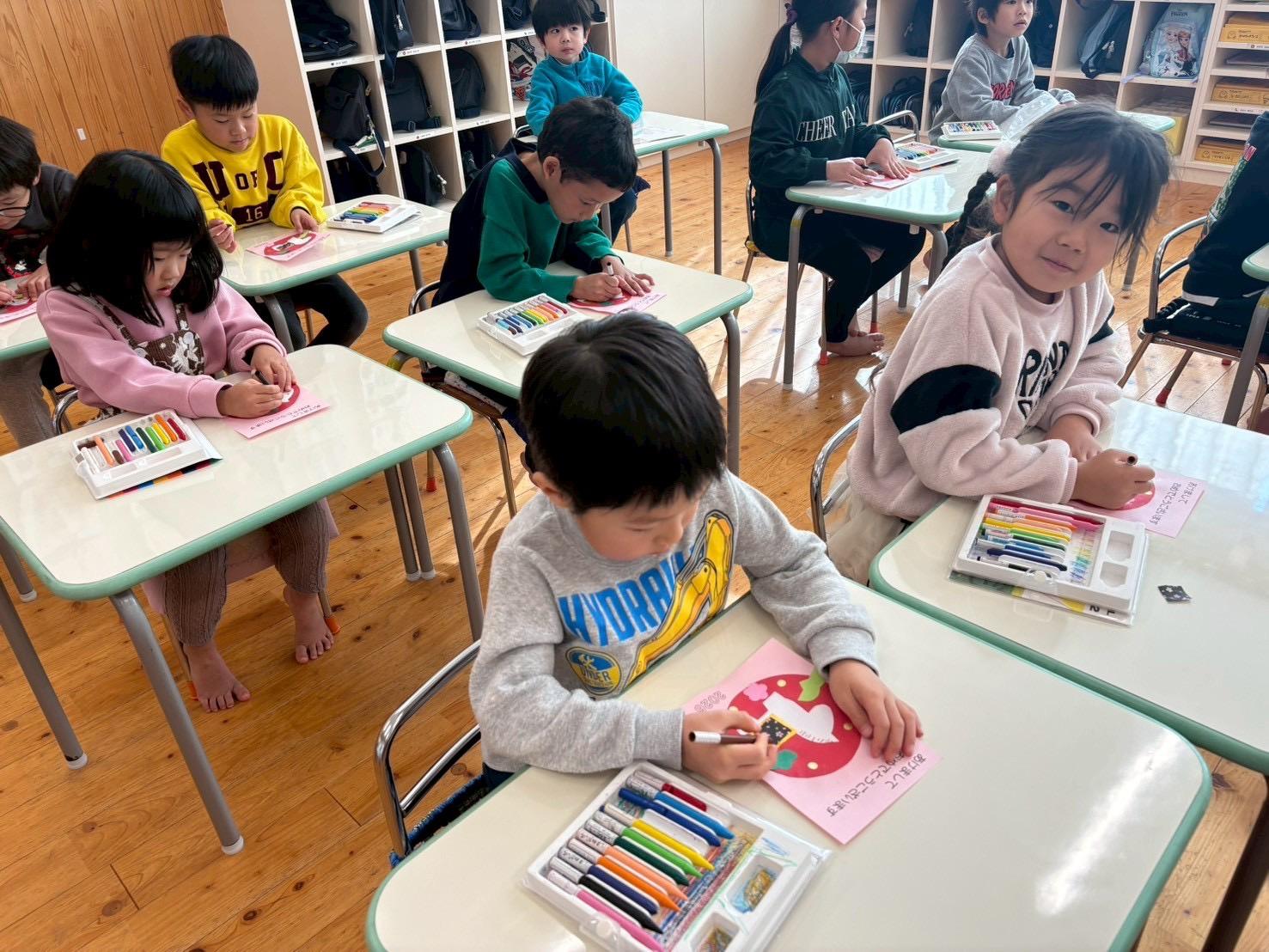 年末に準備をした年賀状は、のりやクーピーなどを使って、それぞれで仕上げました☺️
