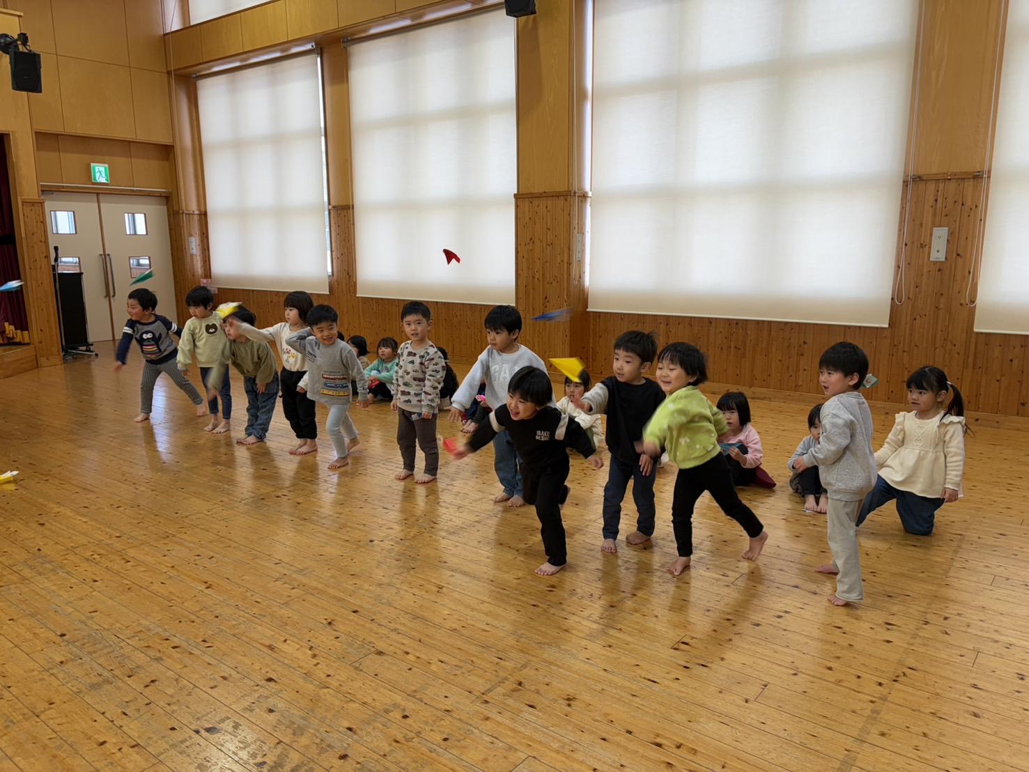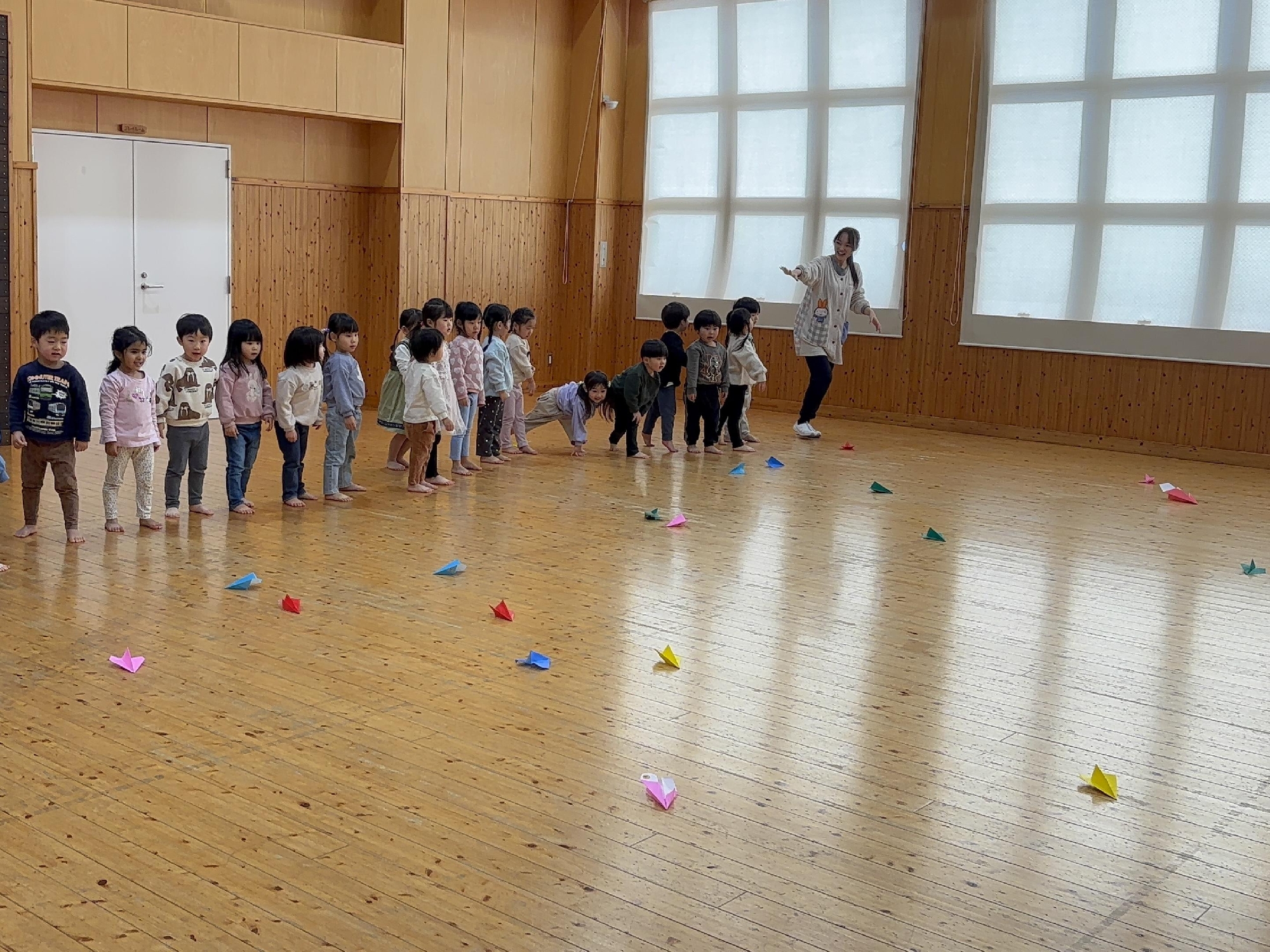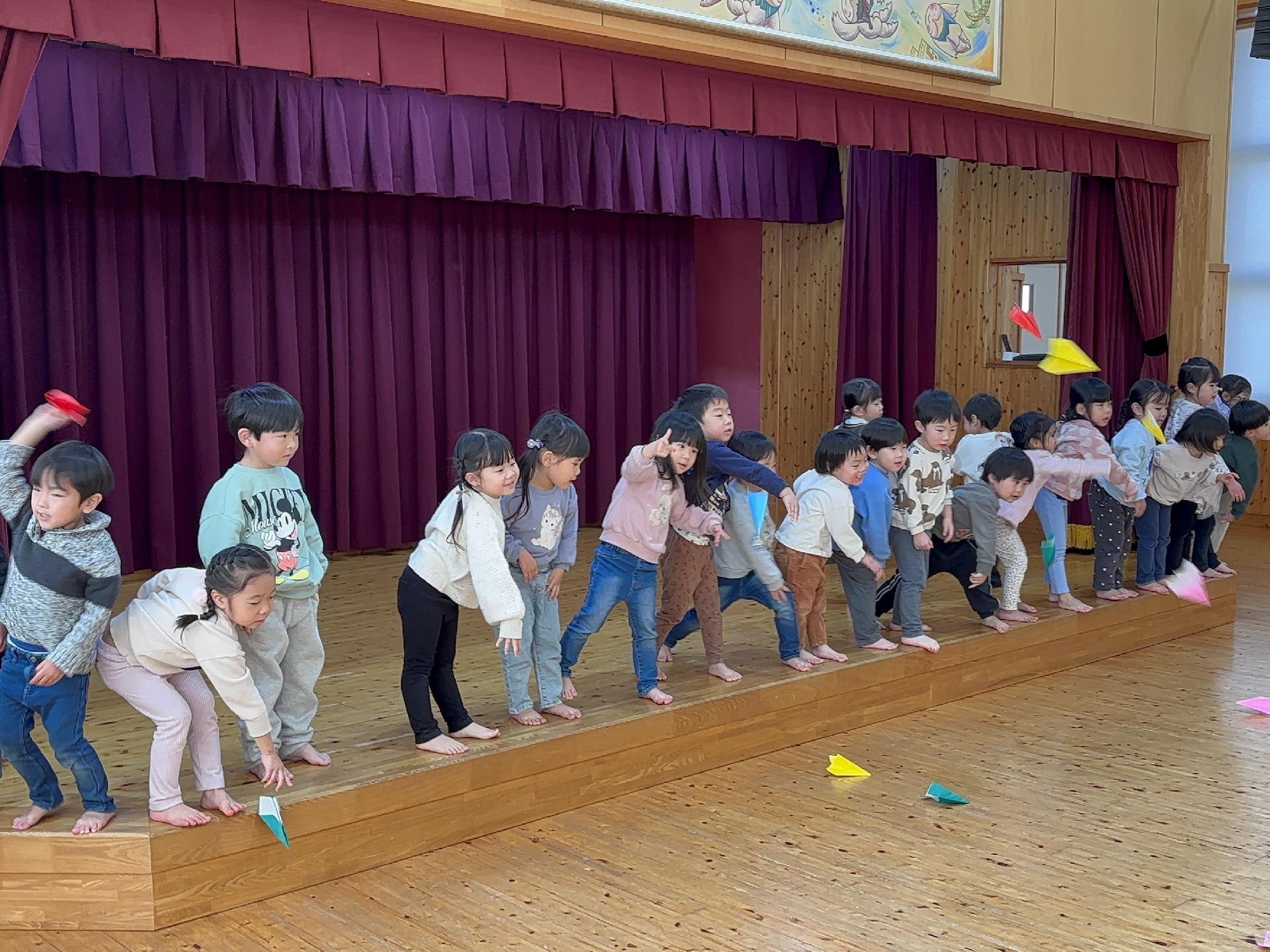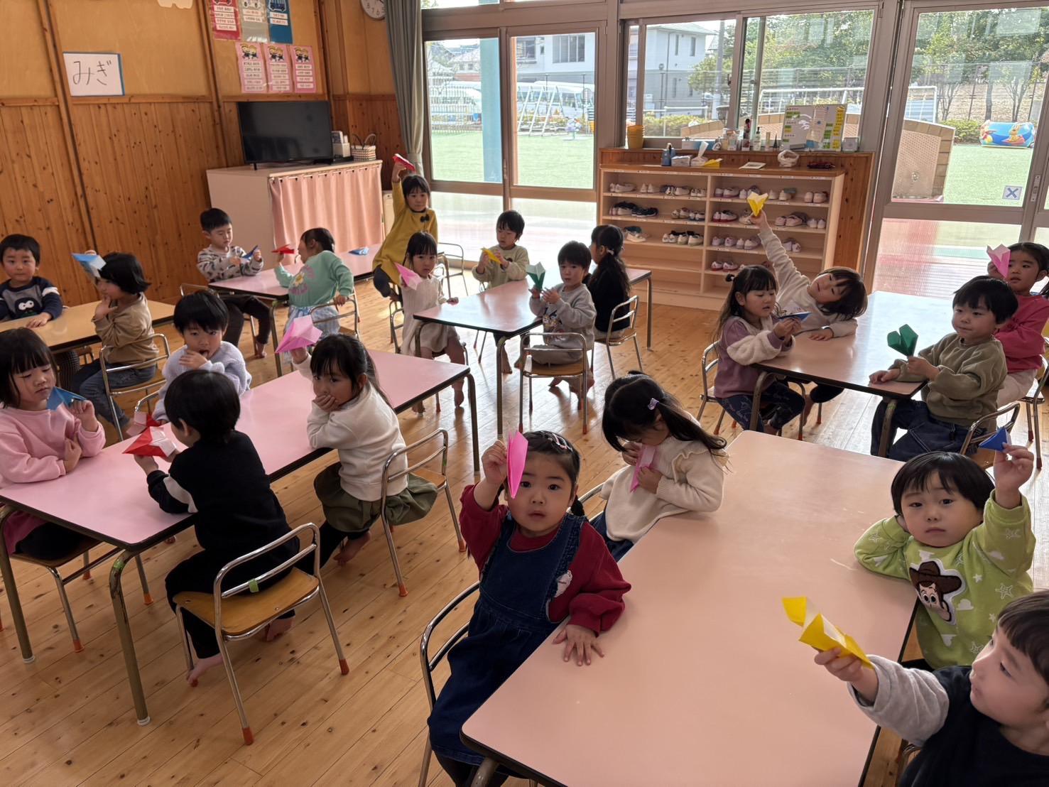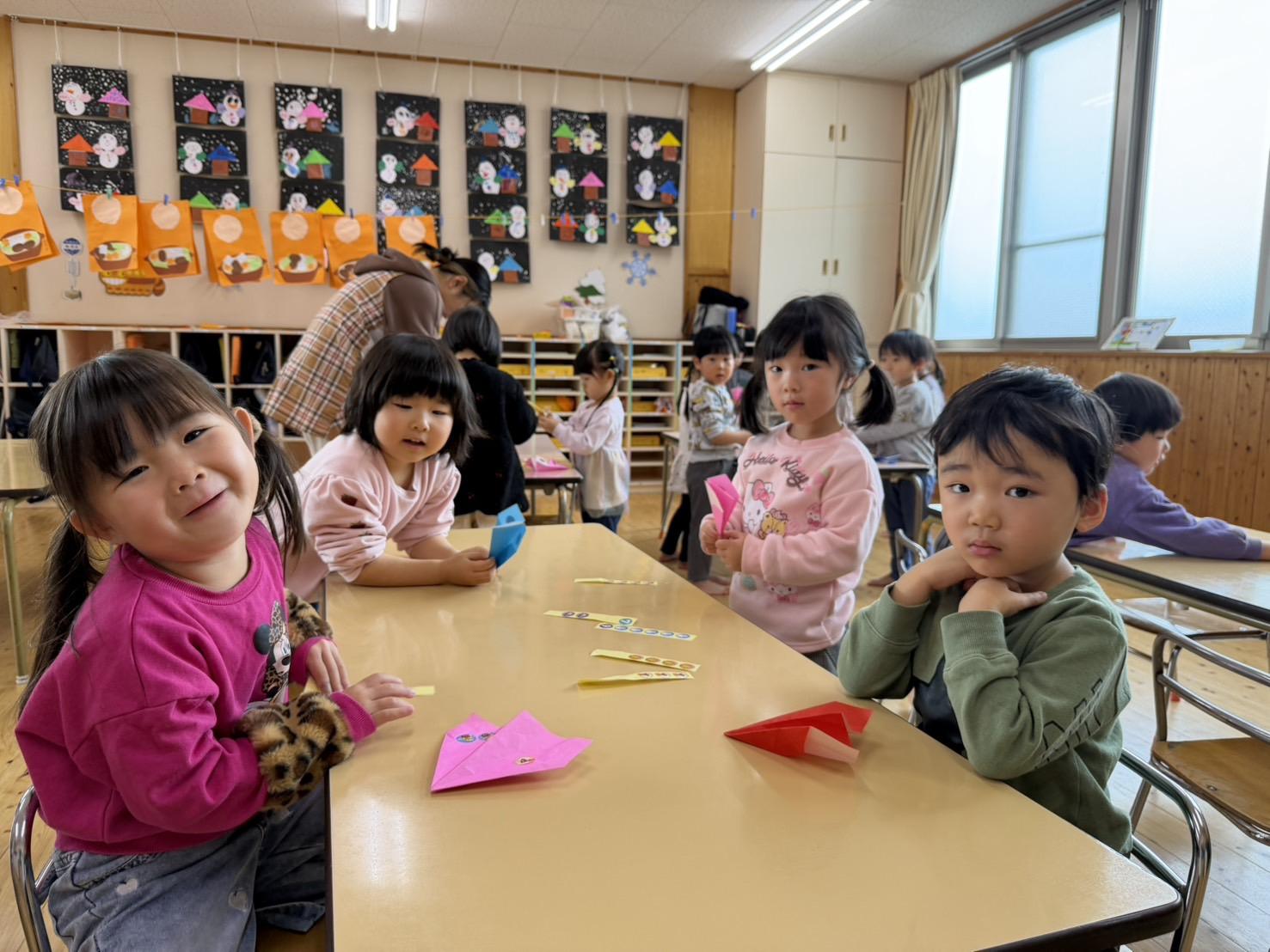「誰よりも遠くへ、長く飛ばしたい!」と、いつもより真剣な表情で折り紙を折る子どもたち…