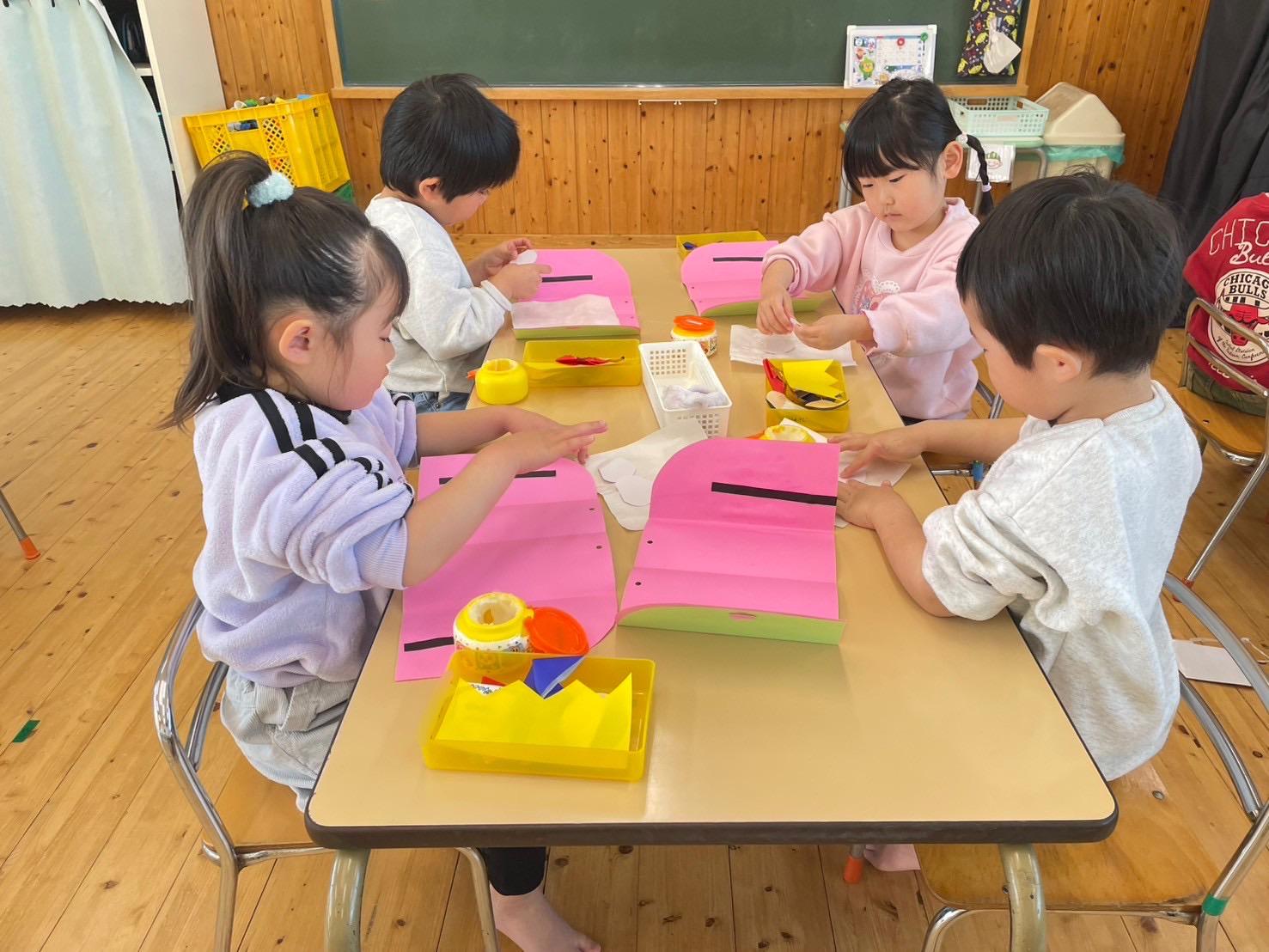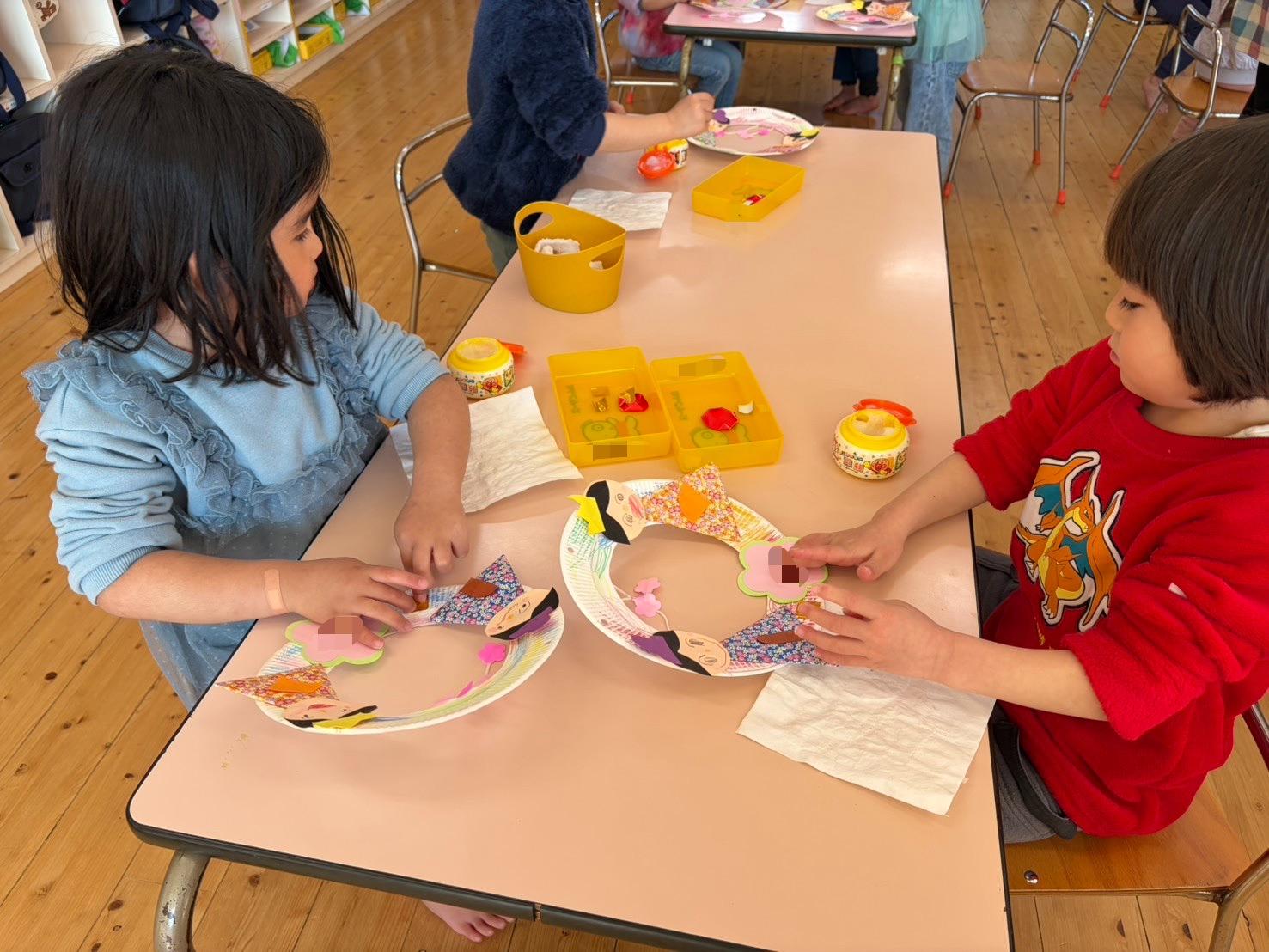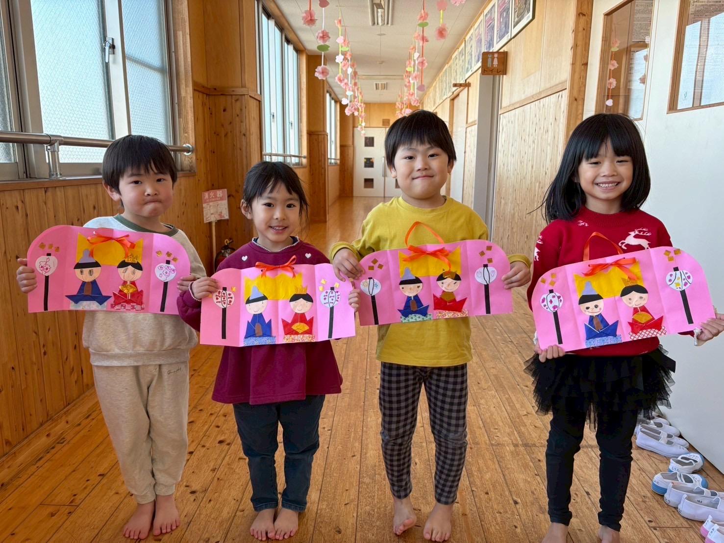 また、年中・年少・すみれ組では、おひなさまの制作も行いました。