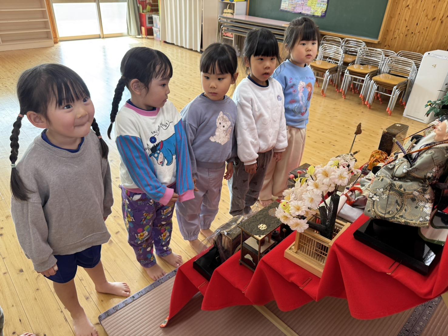 クラスごとにおひなさまが飾られているきく組でご飯を食べたり、絵本を読んだり、じっくり間近で見てみたり...