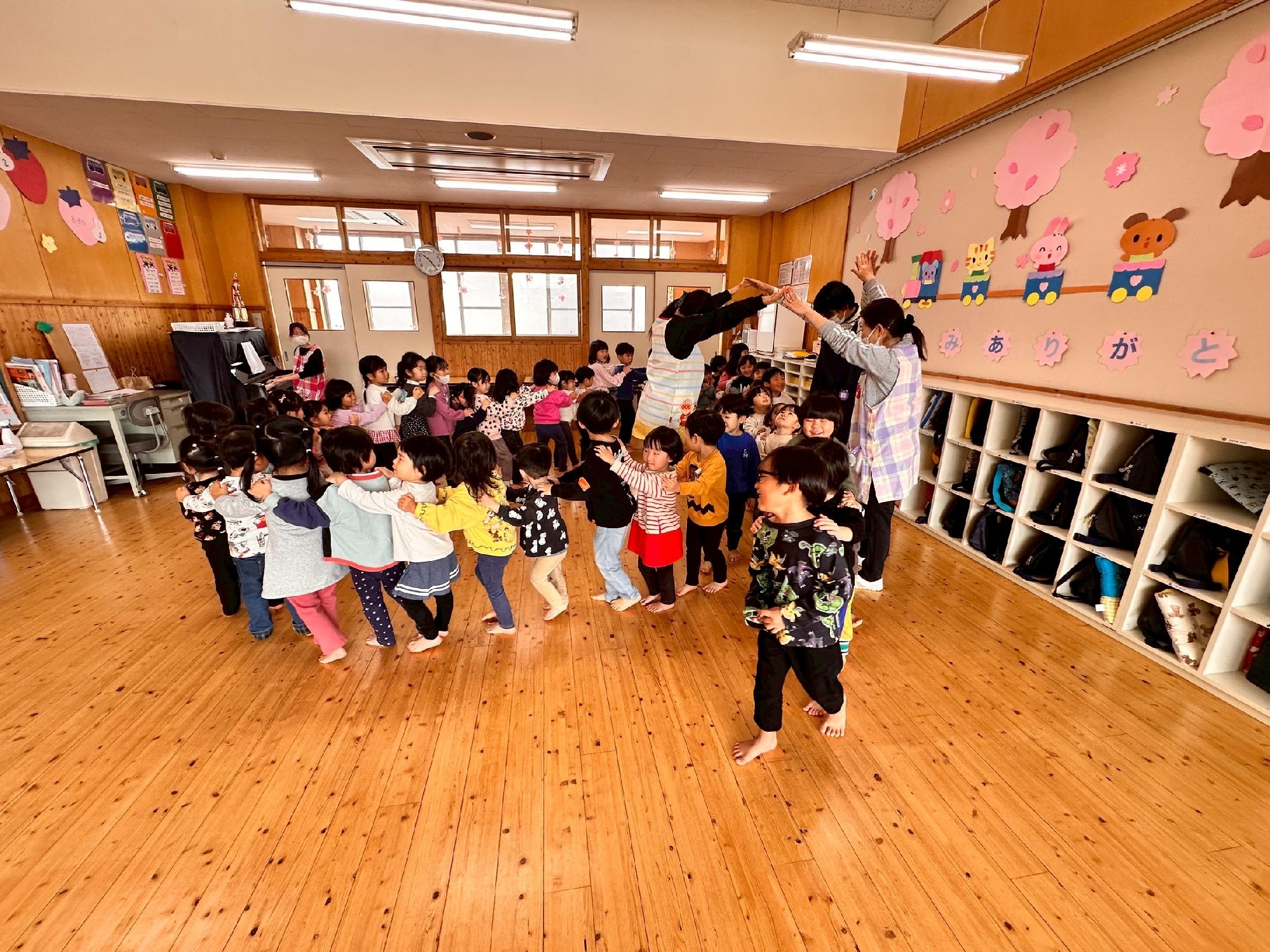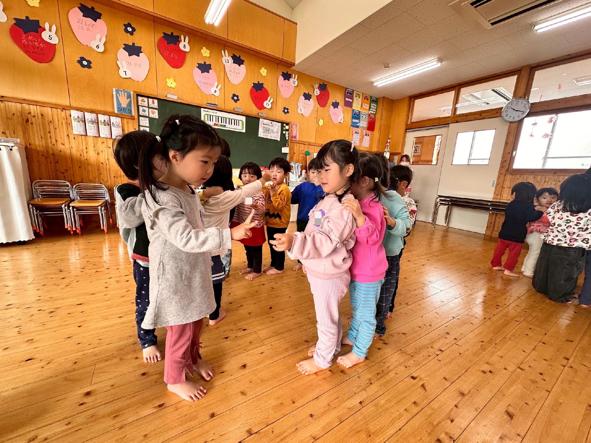 もも組のお兄さんお姉さんたちが「かもつれっしゃ」で遊んでくれたことをきっかけに、じゃんけんを習得✊✌️✋