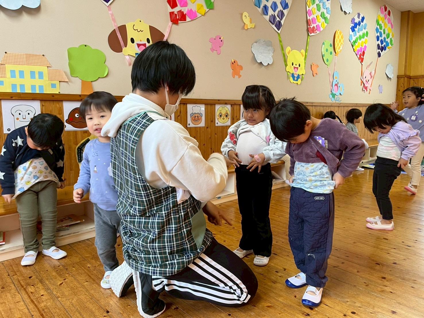 年少組進級に向け、ゆっくり心の準備をしながらトイレの後はお腹をしまったり、上着が裏返しにならないよう脱ぐ練習にも取り組んでいます👦👧